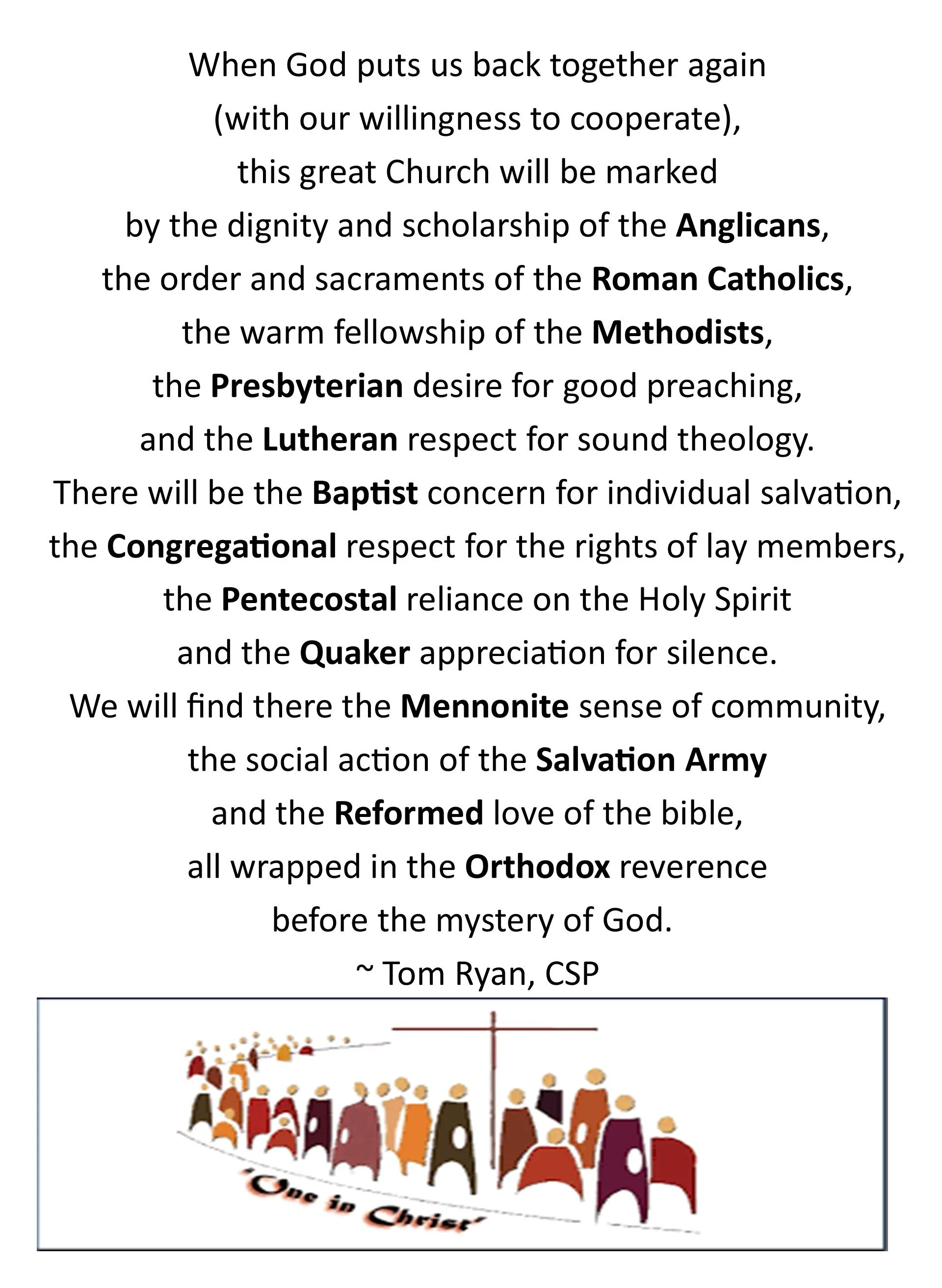 I pray, Father, that they may all be one.